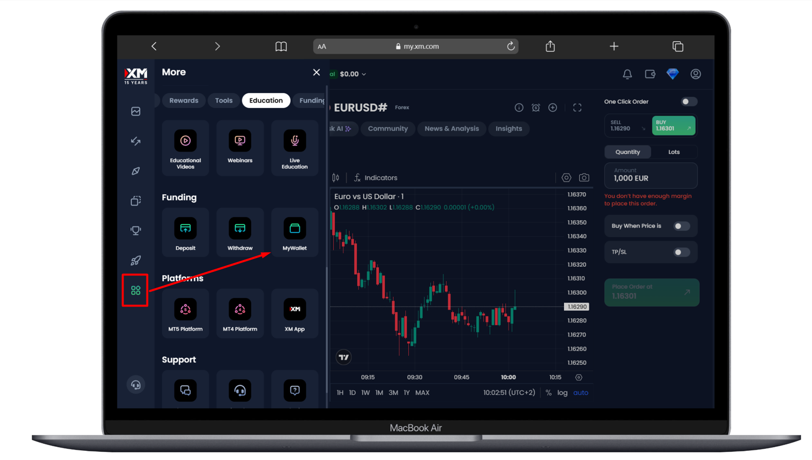 - Transfer your XM wallet balance to your active trading account, then withdraw from your trading account using your usual payment system.
